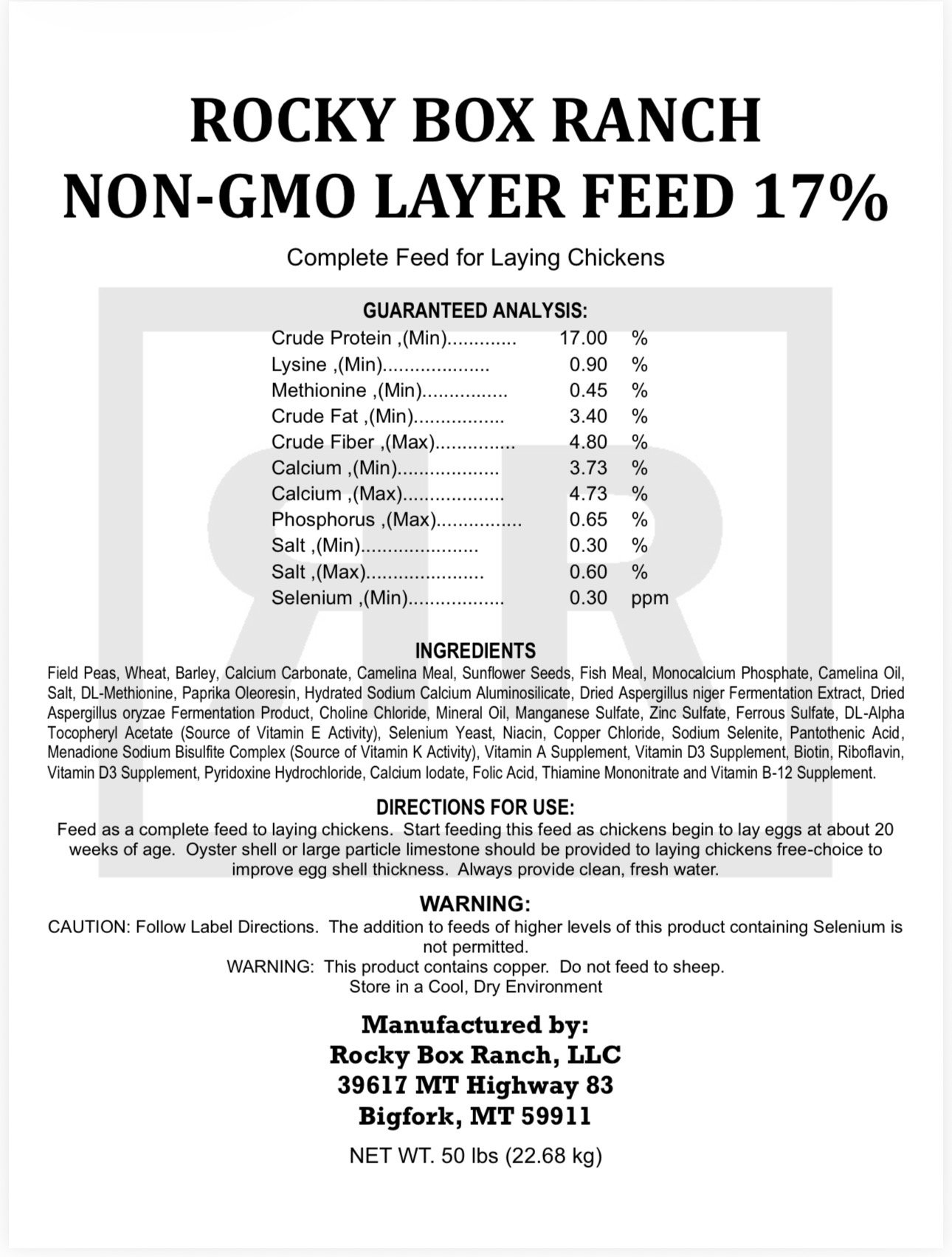 Rocky Box Ranch Non-GMO Layer Feed – 17% Protein